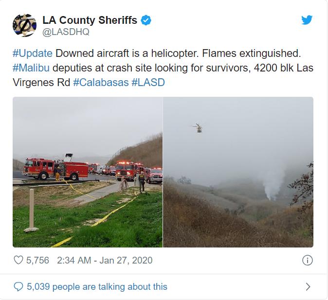 据外媒报道,当地时间1月26日星期日,前湖人球星科比·布莱恩特(Kobe Bryant)在搭乘私人直升飞机在加利福尼亚州的卡拉巴萨斯遭遇事故丧生,享年41岁。直升机坠毁时,机上除了科比外还有另外至少三位乘客,但已证实机上的五人全部丧生,无人幸存。坠机原因正在进一步调查中。
