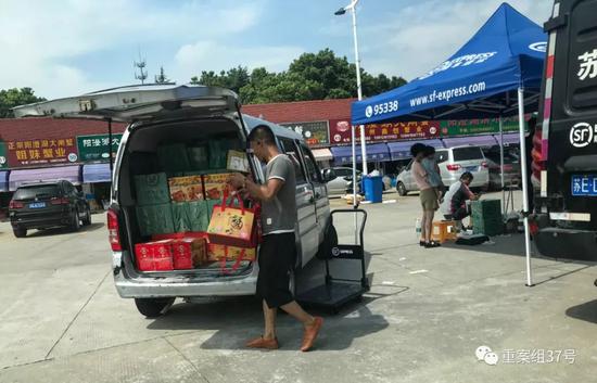 市场内的顺丰物流站工作人员告诉记者,这里的物流是大闸蟹专线,用航空件发往全国,只有少数几个省份不能送达。物流的外包装上写着发货地:苏州阳澄湖。