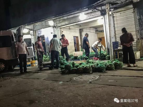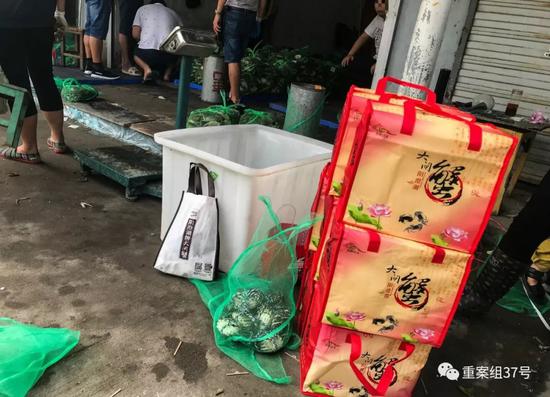 9月18日凌晨,重案组37号来到消泾农贸市场,夜色中,市场内已经忙作一团。一辆苏M(泰州)牌照的厢式货车正在一家商铺门口卸货,货箱侧面印着“兴化国蟹市场”的字样,工人把装着大闸蟹的绿色网兜拎出车厢,过称然后搬入商铺。