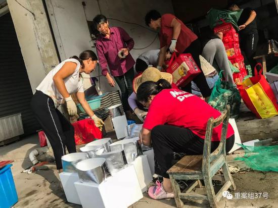 商贩买假防伪蟹扣现场包装