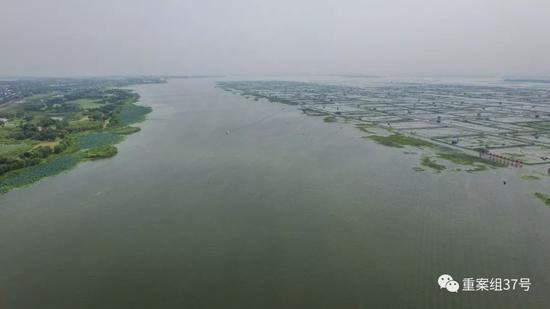 ▲图为阳澄湖,湖中央是养殖大闸蟹区域。新京报记者 半年/摄