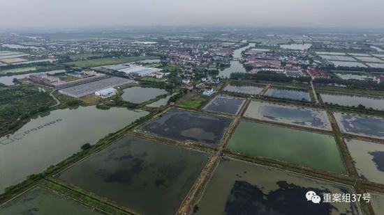 ▲苏州市阳澄湖镇消泾村附近,养殖大闸蟹的蟹塘密集而排列整齐。新京报记者 半年/摄
