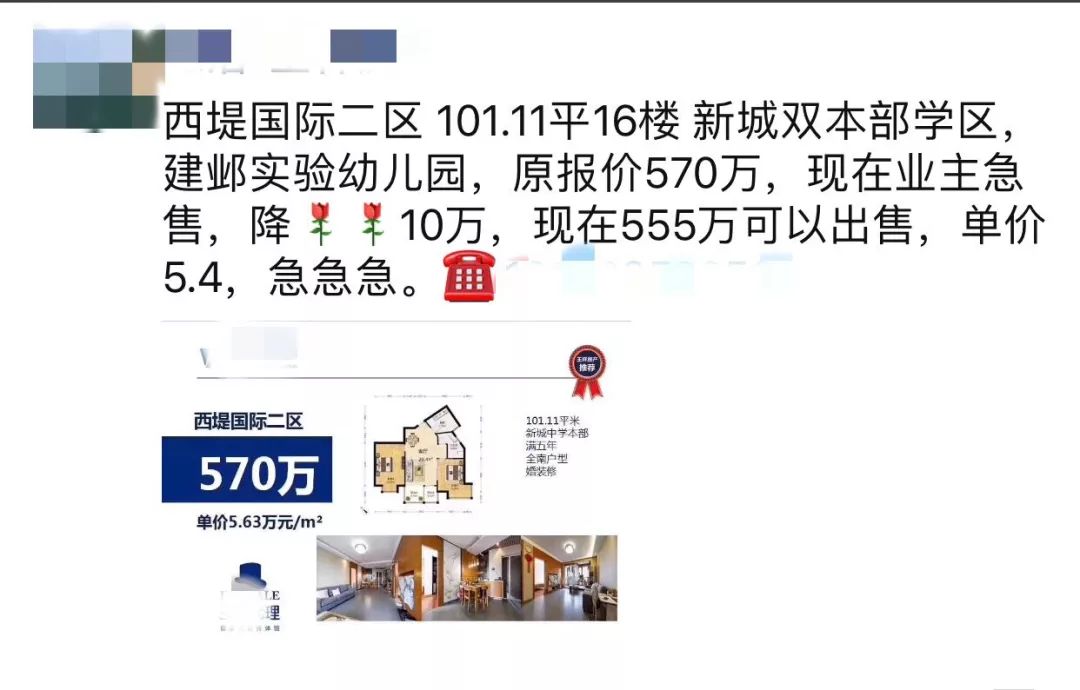 2、西堤国际产权面积101.11㎡,新城本部双学区,原报价570万元,现在业主急售,降15万。