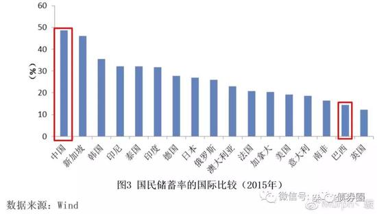 中国高储蓄率的原因有很多,除了民族特点之外,就是众所周知的福利水平较低了。如上图,由于福利水平较低,所以我国的居民储蓄与政府储蓄均远远高于美国。说到福利,看到第一张图的朋友们不知道会不会想到巴西这个国家呢? |