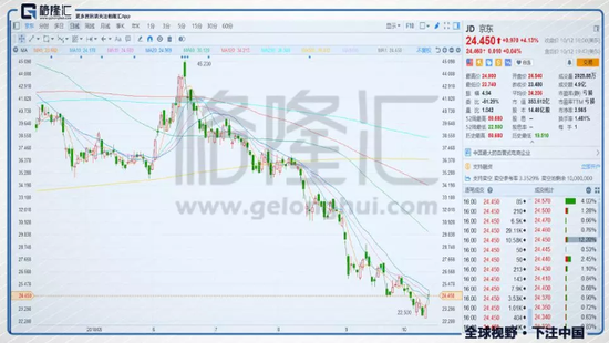 2018年的A股愁云惨淡,但同时期的美股高歌猛进,创出了史上第一长牛,以阿里为代表的中概股也借势不断走高,然而热闹是别人的,京东什么也没有。京东股价自1月底走上50美刀之后,就和长牛的美股分道扬镳,现在只有24.45美刀,股价一下子回到了2014年。