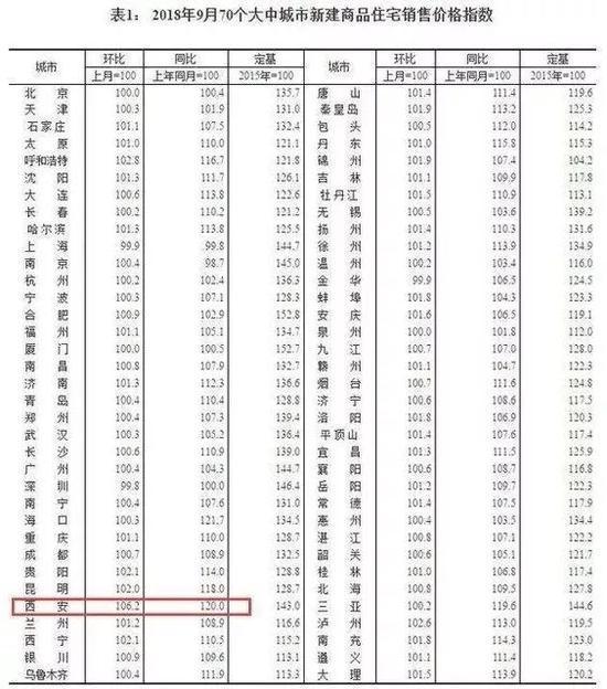 对于西安房价的最新波澜,来自国家统计局10月20日发布的一份房地产销售价格统计数据,在这份名为2018年9月70个大中城市商品住宅销售价格变动情况统计的数据中,西安环比涨幅6.2%,领跑全国。