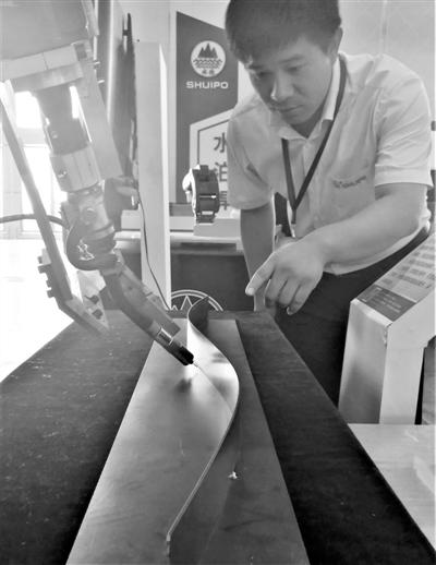 在水泊焊割设备公司,工作人员将一串程序输入计算机,一台智能焊割机将钢板精密地焊接起来,焊缝只有0.8毫米。这项技术让水泊焊割的技术拿下32项发明专利,也打开了欧洲市场。李继保摄