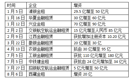 据不完全统计,今年以来已先后有11家金融租赁公司宣布增资,增资规模达365.7亿元。