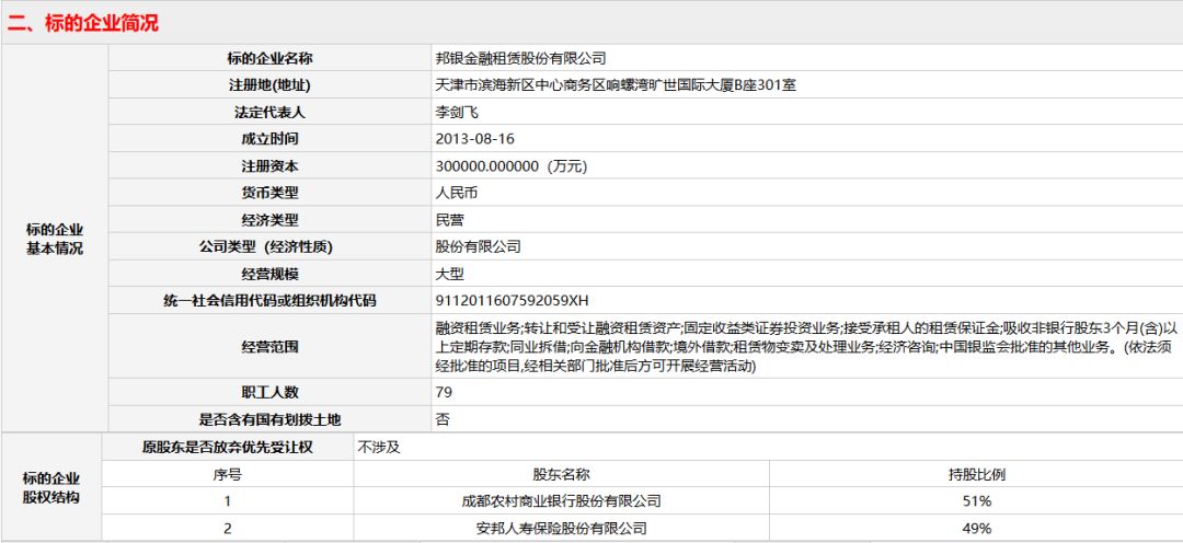 公开信息显示,邦银租赁成立于2013年8月16日,法定代表人李剑飞,初始注册资本10亿元,2016年6月经天津银监局批复增资至30亿元。
