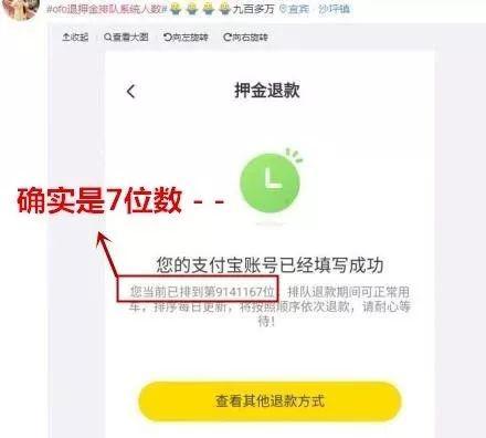 据第一财经消息,网友在ofo的APP登记退押金信息后,发现自己排在了九百多万位。