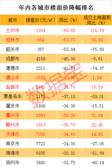 真相三:地价跌幅榜即是明年房价跌幅榜?