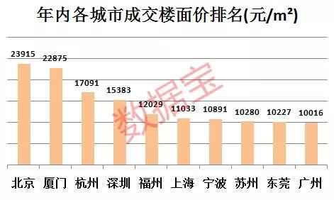 而数据宝统计的数据显示,北京市今年以来住宅成交土地楼面价达到23195元每平,深圳市楼面价达到15383元每平,上海市楼面价达到11033元每平。榜单中有10个城市楼面价超过万元,显然这个数据更符合常识。