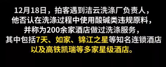 声明称,“近日有媒体报道某棉织品洗涤供应商违反公共纺织品清洗服务规范,其中提及该供应商与多家酒店有洗涤合作。经调查,我司当地门店已于2018年9月底终止与该视频中涉及的供应商合作。”
