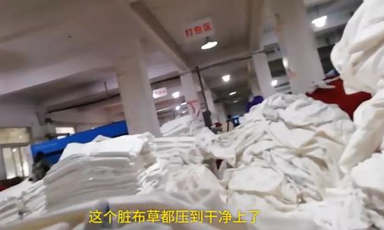 近日,有拍客来到湖北洁云洗涤厂卧底调查。他在地上发现了一件“带血”的床单,一名清洁人员把它抱走,混在一些普通的被罩中一起洗。