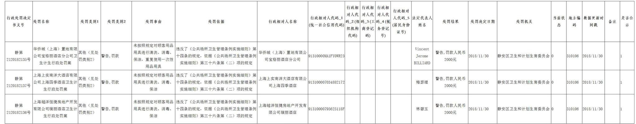 截至目前,上海7家涉事酒店的处罚结果均已出炉,每家酒店均被处以警告,并被罚款2000元。