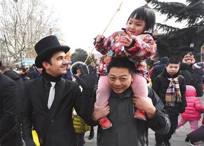 今年,庙会首次引入“欢腾国际大马戏”,表演团队由来自意大利、西班牙、德国等8个国家的40余名演员组成。惊险的“高空钢丝”杂技、滑稽的小丑舞蹈、精彩的魔术等节目轮番上演,观众尤其是小朋友兴致盎然,尖叫声、掌声和笑声此起彼伏。