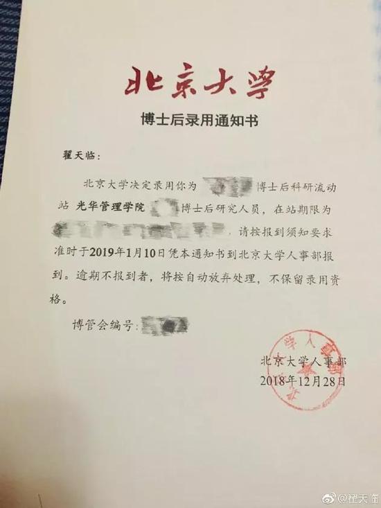 就在半个月前,翟天临刚刚公布北京大学光华管理学院博士后研究人员的录用通知,没几天又亮相春晚,眼见要出人头地,他却在直播中被问到“博士论文能否在知网上搜到”时回答:“知网是什么东西?”
