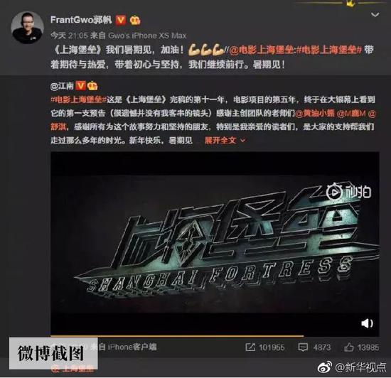 郭帆日前就在微博上转发了科幻电影《上海堡垒》首个宣传片,并表达对影片的期待。此片也是由《流浪地球》联合出品方之一的腾讯影业参与出品,预计将于今年暑期上映。这种“抱团取暖”的作法也让不少科幻迷在网上津津乐道。