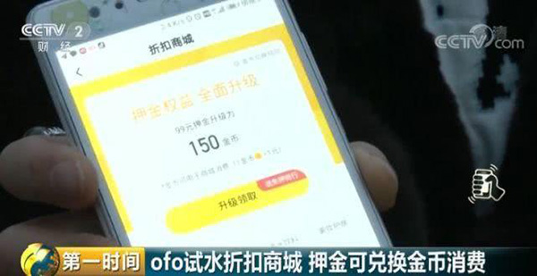 央视财经客户端3月2日消息,最近这段时间,ofo小黄车的押金问题备受关注,目前虽然官方同意退还押金,但是退款等待人数已经达到1500多万人,等待退押金的人数远远大于小黄车的兑付能力。近日不少用户发现ofo正在测试“折扣商城”的功能,用户可以将押金兑换为金币后在商城消费。
