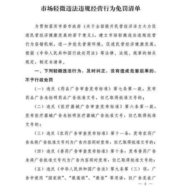 *附:《市场轻微违法违规经营行为免罚清单》文件