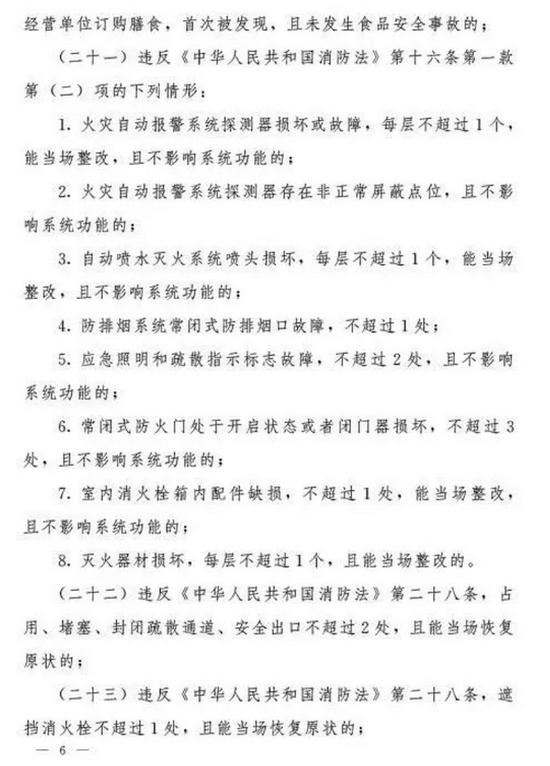 文件称,对于消防、广告、合同、食品安全、消费者权益保护等领域的三十四项轻微违法行为,免予处罚。