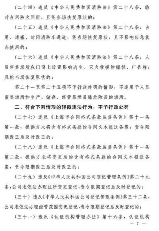 全国首份多领域轻微违法免罚清单文件诞生了,出台文件的是直辖市上海。