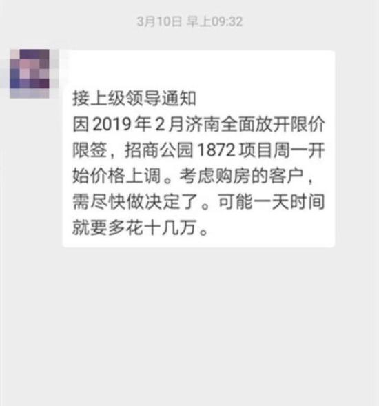 阳春三月,气温逐渐回升,济南楼市的温度似乎也在众口相传的朋友圈里回暖了。近日,一则“2019年2月济南全面放开限价限签”的消息在朋友圈传播,不少市民担心房价将会有大幅波动,记者在采访济南市建委后得知,政府限价政策确实取消,但限购政策仍在施行。