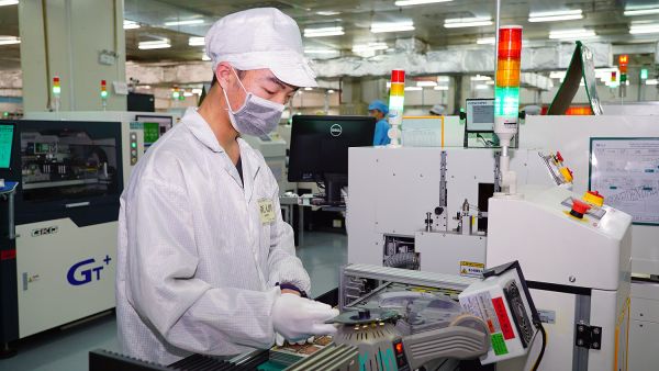 记者首先来到小米9的“内脏”核心零部件贴片的SMT车间,这里几乎为机械自动化车间,只有少数人工对PCB板进行复查。