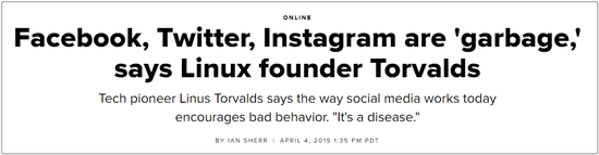 Linux之父:Facebook、Twitter和Instagram都是“垃圾”