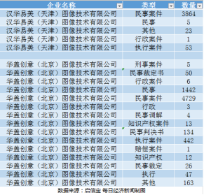 每经记者通过梳理启信宝信息发现,视觉中国两家子公司华盖创意(北京)图像技术有限公司(以下简称华盖创意)和汉华易美(天津)图像技术有限公司(以下简称汉华易美)主要承担视觉中国对外诉讼。2017年至今,华盖创意和汉华易美涉及纠纷案件的数量分别高达7071件和3052件,合计11023件。