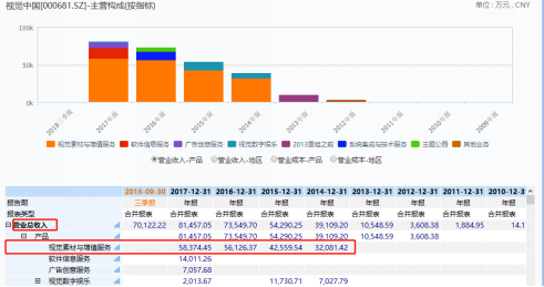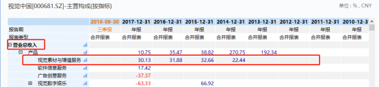值得一提的是,2015~2017年连续3年“视觉素材与增值服务”业务板块的同比增长率都超过30%,分别为32.66%、31.88%和30.13%。