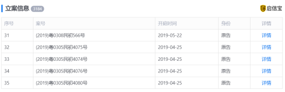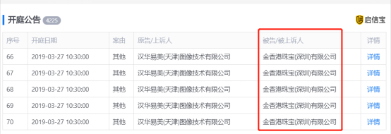 此外,每经记者还注意到了一家名为“深圳市粤豪珠宝有限公司”的企业。该企业将在2019年5月22日应诉来自汉华易美多达31条同案由诉讼。