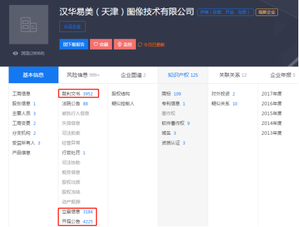 然而,汉华易美4225条开庭信息,只是视觉中国维权的冰山一角。每经记者通过启信宝看到,还有多达3184条信息是在已立案但未开庭的信息中。