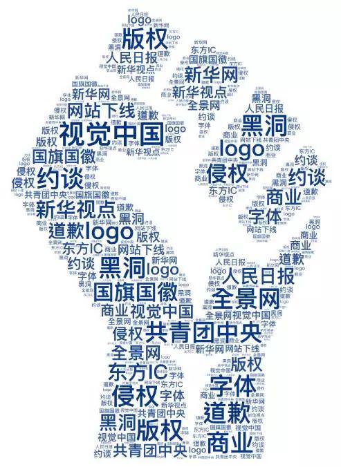 大数据分析发现,在此次事件传播中,版权问题最受关注,另外因共青团中央的微博,“国旗”“国徽”也成为网民关注的热词。