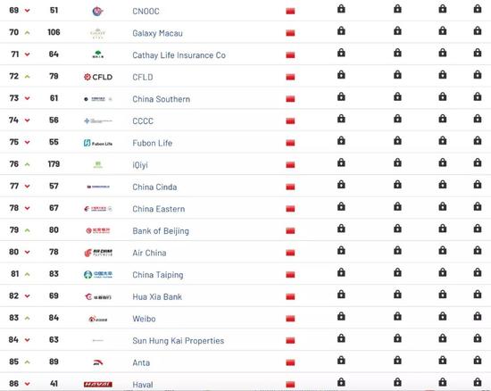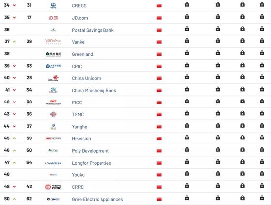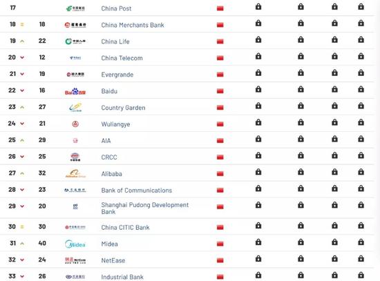 进入前十大品牌的还有中国移动、中国农业银行、国家电网、中国银行、微信和腾讯QQ。其中中国农业银行和微信的排名相较2018年均有所提升,中国移动、国家电网、中国银行(香港)以及腾讯QQ排名略有下降。据Brand Finance网站介绍,爱奇艺是品牌价值增长最快的中国品牌,该品牌2019年占据榜单第76名,2018年则排名第179位。