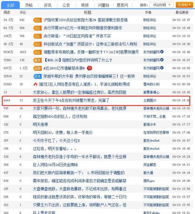 巨人网络某高管对21世纪经济报道记者表示,“最初的一则传言老板的信息其实来自东方财富股吧,有个叫‘土肥圆10’的用户最先发出的这则消息。其后,经自媒体纷纷转载,越转越悬。”