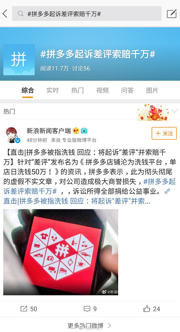 今早听说拼多多要起诉我们并索赔,我们觉得莫名其妙,我们对拼多多方并没有什么恶意,我们只是想告诉大家,利用拼多多渠道支付洗钱这件事儿很严重,拼多多方面应该重视起来,严打一下。