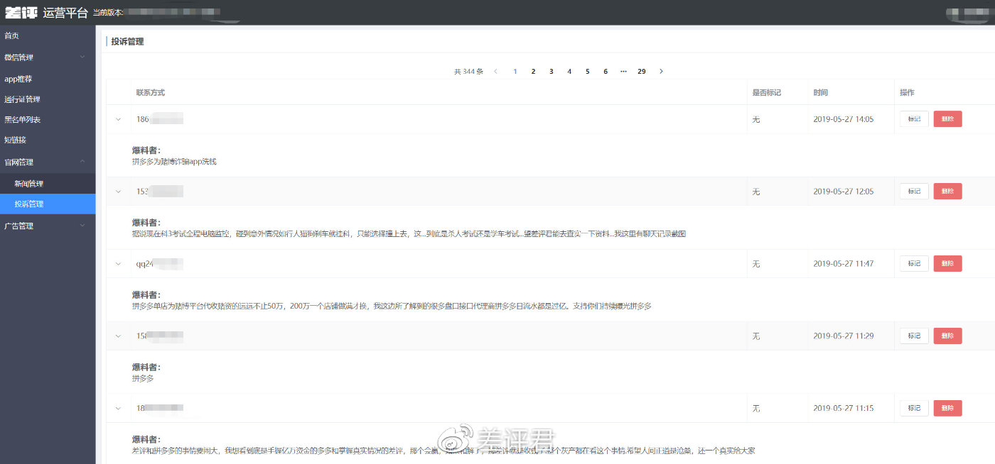 红框内为爆料后台的截图