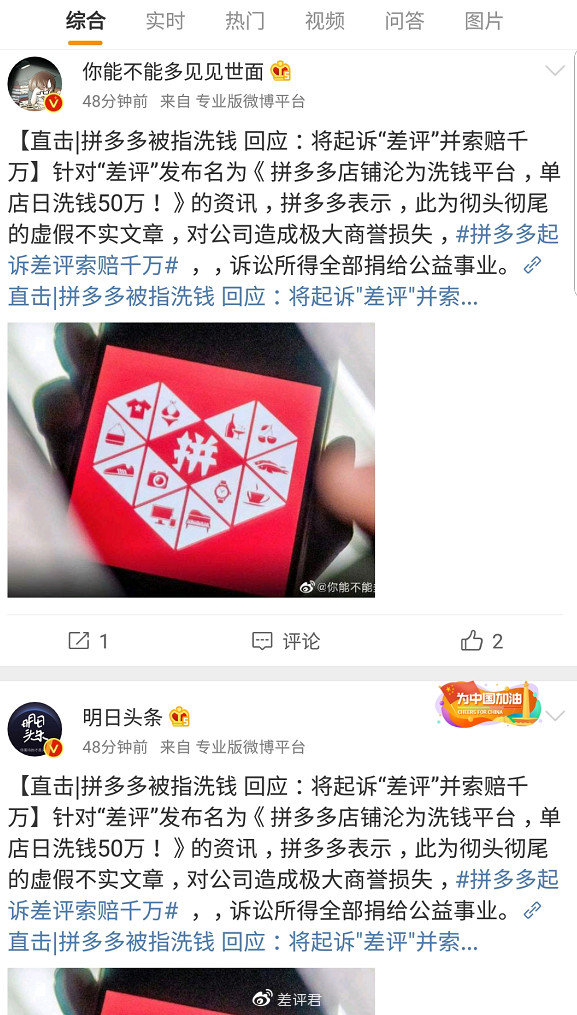 甚至拼多多方面还在接受采访的时候举例暗示 “ 差评收钱黑拼多多 ” 这种论调。