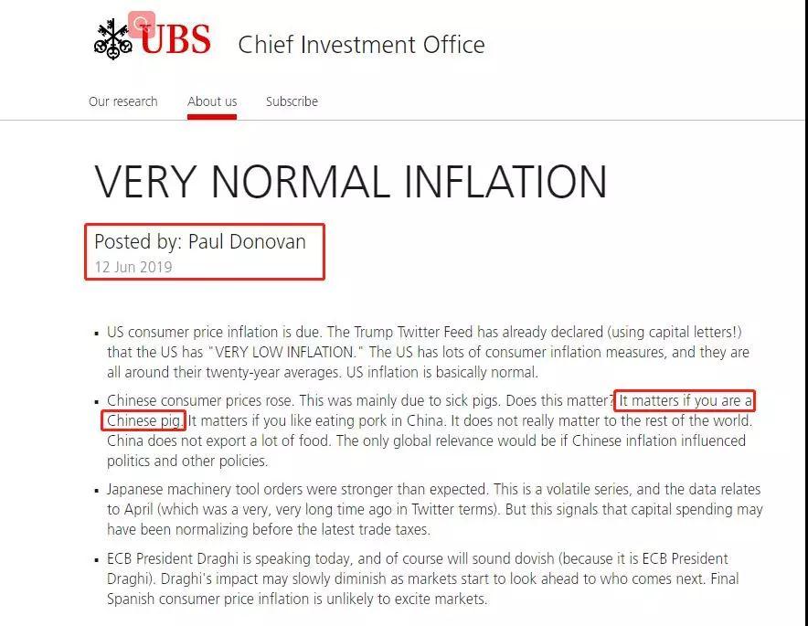 根据网友早先截图显示,这份关于通货膨胀的报告发布于6月12日。标题是《通货膨胀非常正常》,作者毕业于牛津大学,在瑞银工作了26年之久的首席经济学家保罗·多诺万(Paul Donovan)。