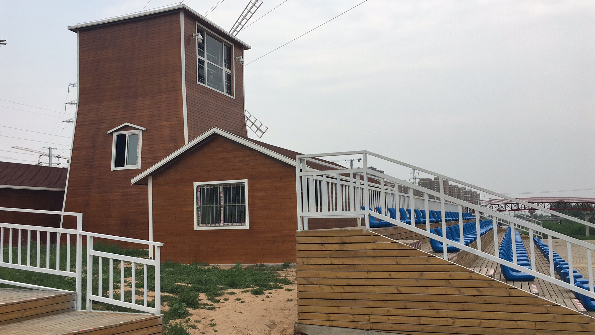 张家口万全区“水幕电影”已播出,图为观看基础建设。 新京报记者 王昆鹏 摄