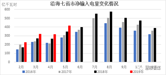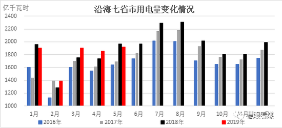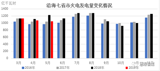 最后的结果就是沿海七省市火电发电量被挤压(为了分析简单,图上没放1-2月累计数据)。