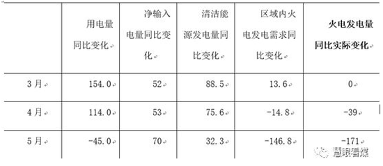 这张表形象的展示了火电需求的变化情况,火电需求的减少和实际火电发电量的减少非常接近。