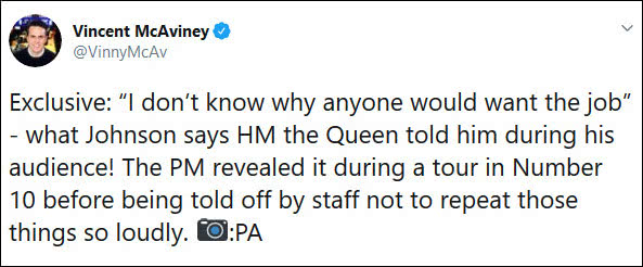 按传统来说,首相就职前与女王的对话应该保持私密,但约翰逊没能管住自己的嘴巴,愣是把女王的话告诉了别人。
