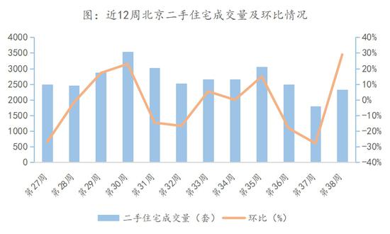 成交量止跌上升,但仍处历史较低水平。报告显示,2019年第38周,北京二手住宅成交套数为2328套,环比上涨28.98%。然而,成交量虽有所上升,但依然处于历史较低水平。