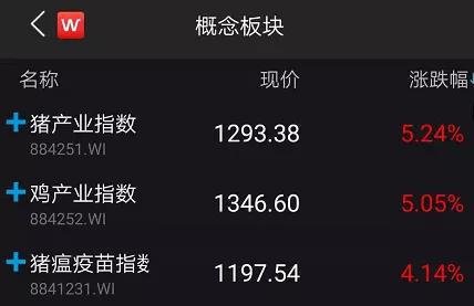 今日早盘,鸡肉产业指数同样出现大涨,截至当日收盘,鸡肉产业指数大涨超5%,A股一度上演了“鸡猪升天”的双轮行情。