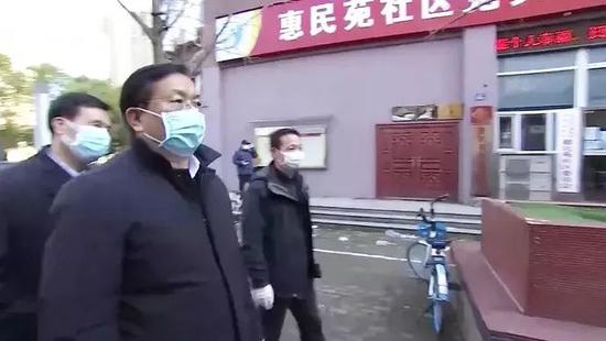 2月18日下午,王忠林暗访武汉江岸区的百步亭社区(图源:长江日报)