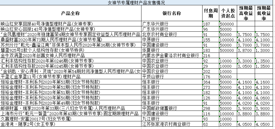 对于今年银行女神节专属理财的发售情况,融360大数据研究院分析师刘银平指出,推出相关产品的网点确实稀少。 |