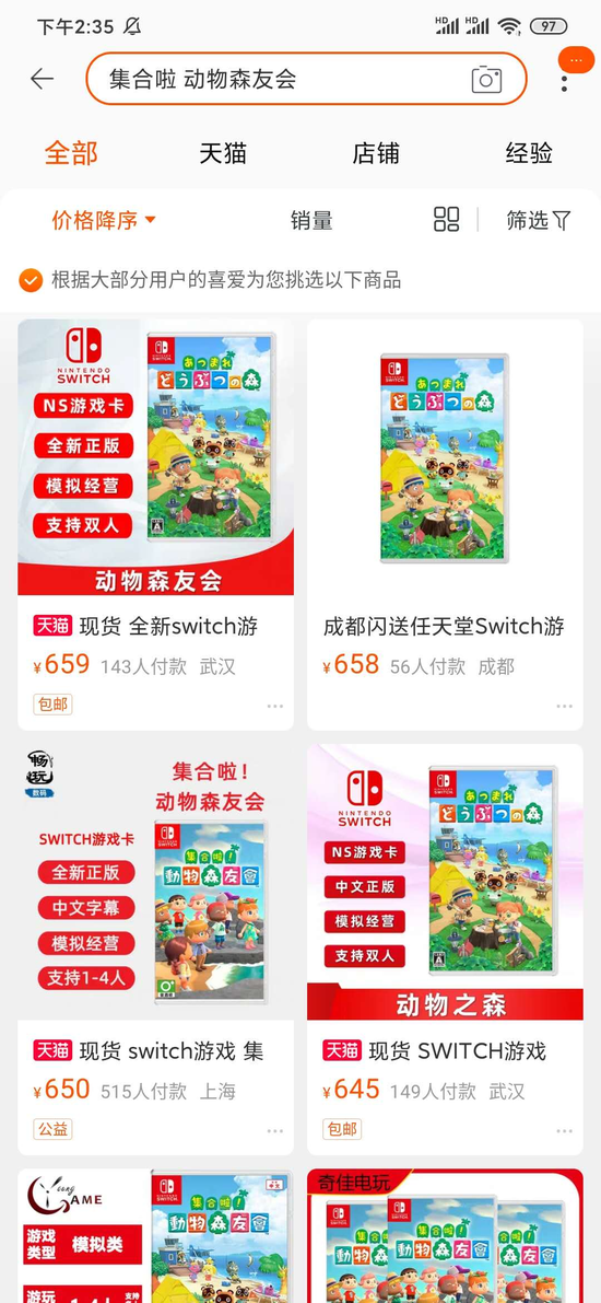 从3月19日开始,《动森》便陆续出现在朋友圈、微博、小红书等各大社交平台,人们分享、炫耀自己在岛上的生活。淘宝上,《动森》卡带的价格从320涨到了600多……