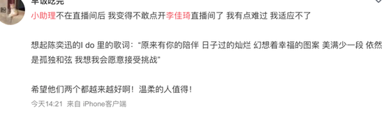 像陆依萍想念何书桓那样,李佳琦直播间的粉丝们,在付鹏的微博和抖音评论里,一遍遍打出了,在日记本里写下“小助理走的第N天,想他”。